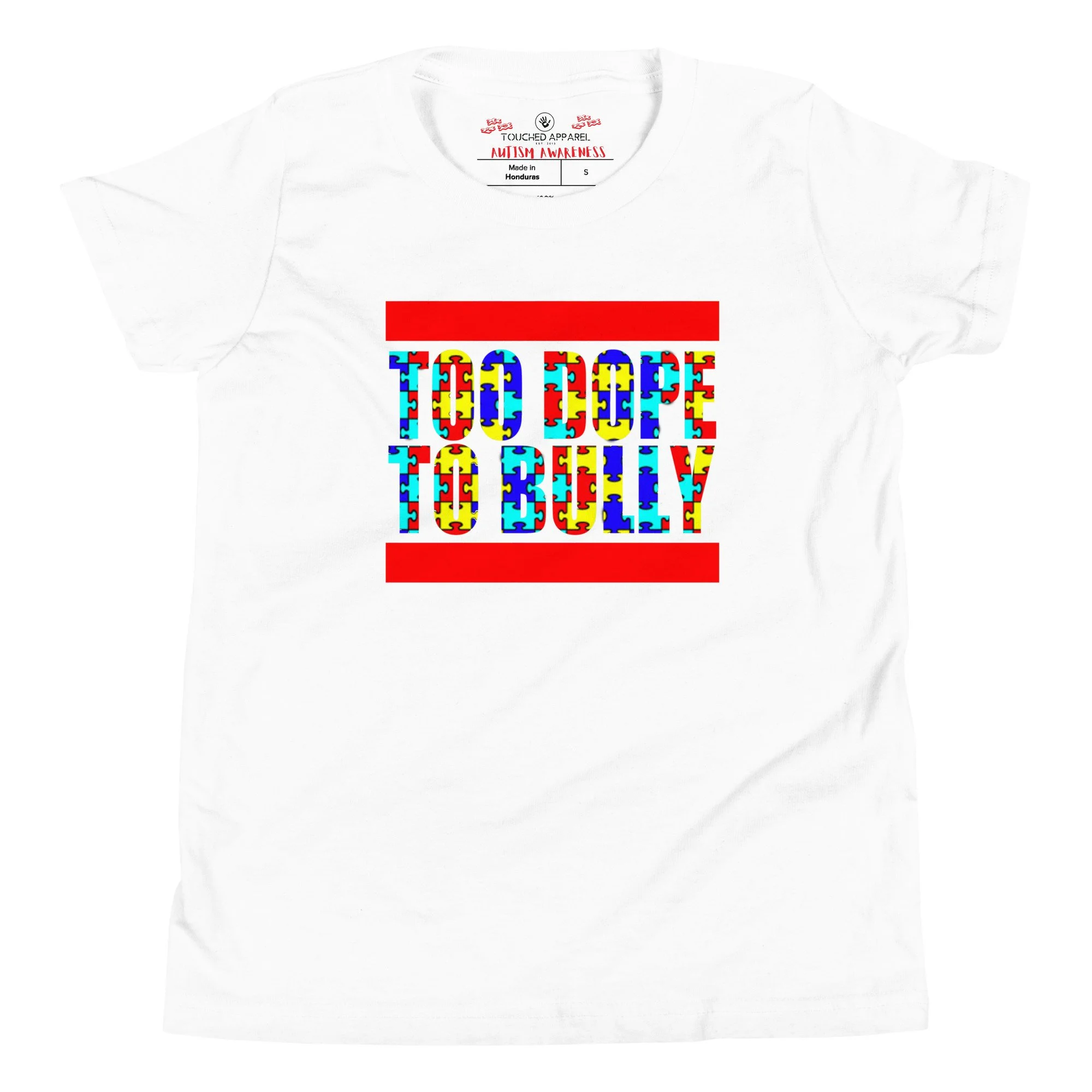 Make a bold statement with the Youth Autism Awareness Too Dope To Bully T-shirt — because every child deserves to feel seen, supported, and safe.